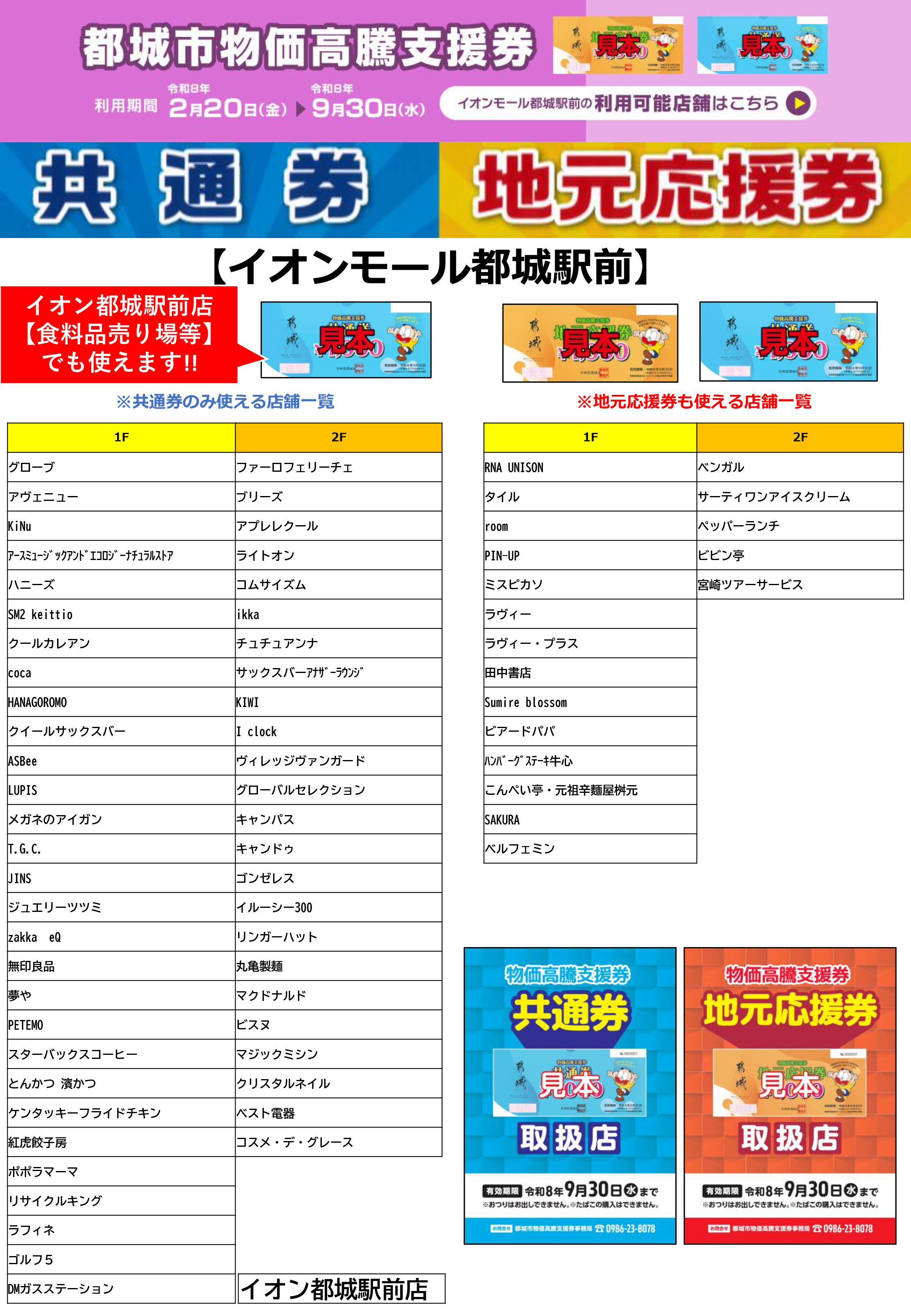<地元応援券>※共通券・地元応援券の両方使用可能